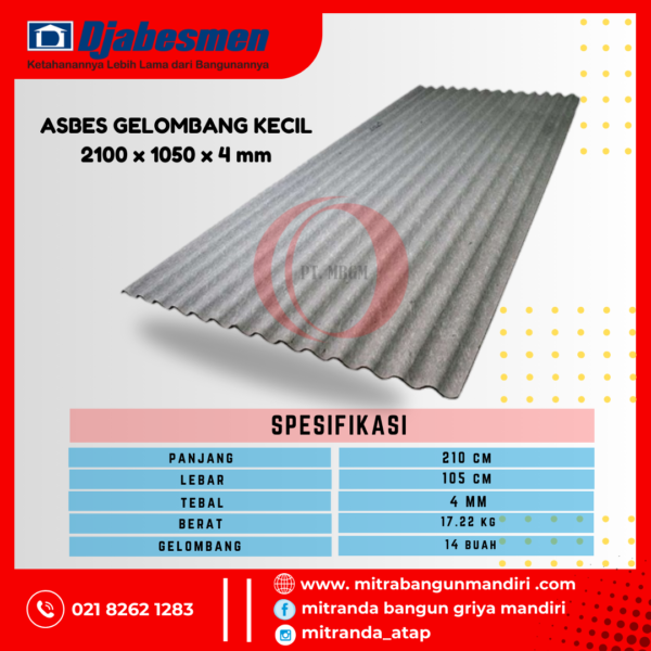 Atap Asbes Djabesmen 2100 x 1050 x 4 mm